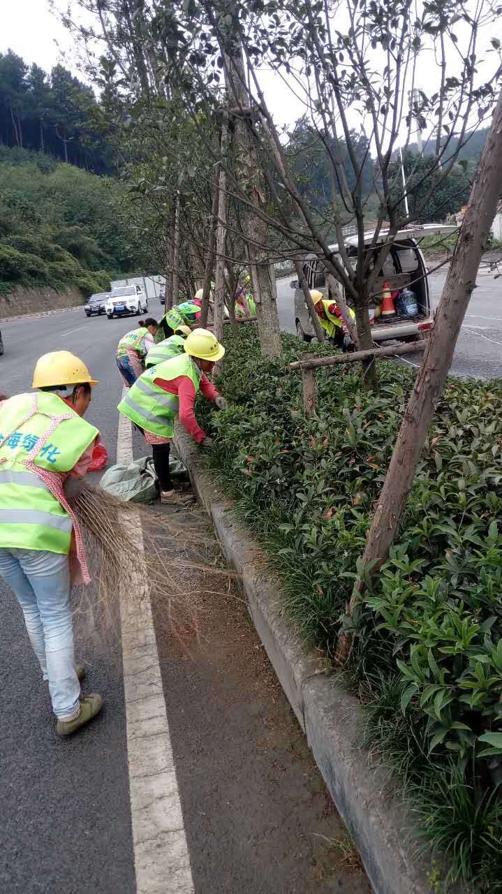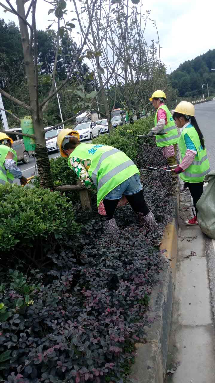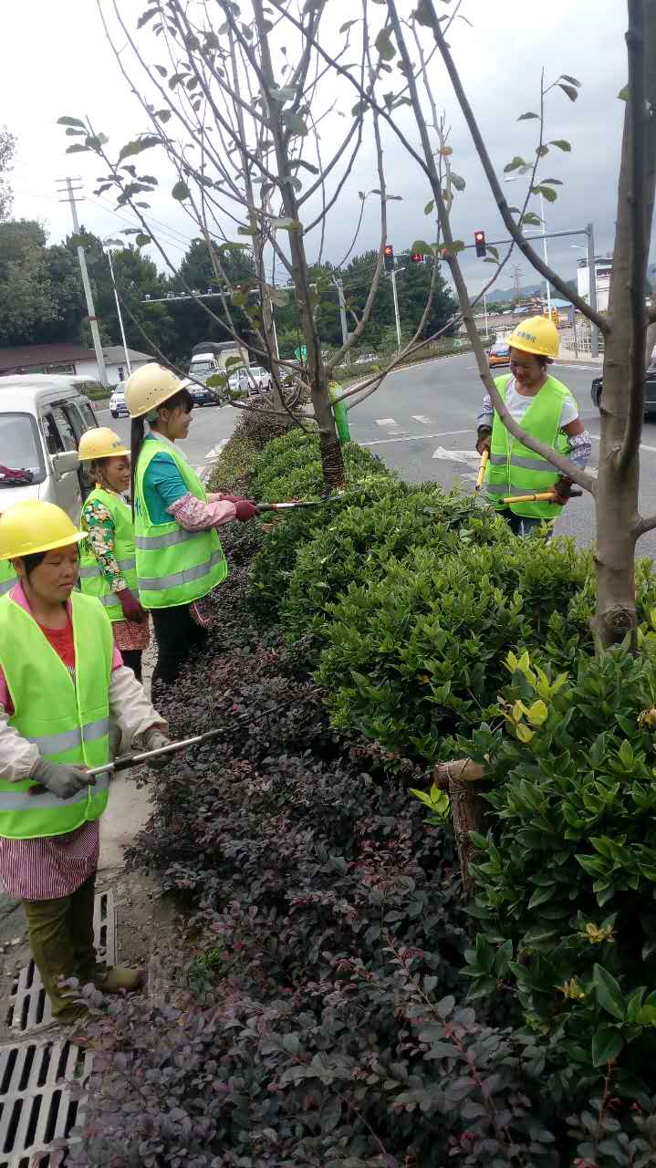 南二環(huán)中央綠化帶修枝剪葉綠化環(huán)境維護(hù)工作正在進(jìn)行中,圖為金海綠化養(yǎng)護(hù)隊(duì)工作中。